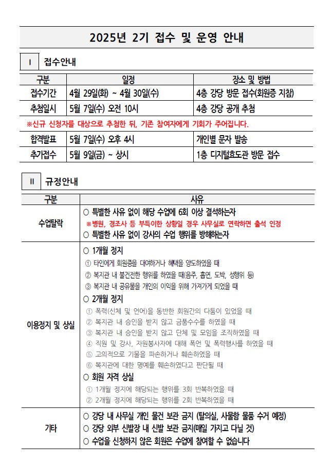 2025년 서구문화교실 2기 시간표 및 접수 일정 안내